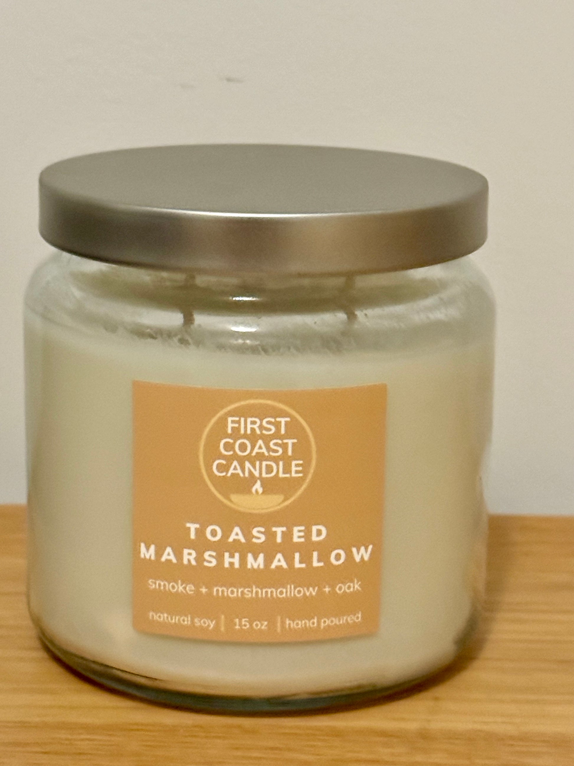 Imagine sitting by an evening campfire after a day of an autumn adventure. Crisp notes of ozone and eucalyptus simulate an evening chill, followed by a strong heart of marshmallow and sugar roasting over a base of embers, oak, and smoke. This fragrance is infused with essential oils, including juniper and clove.